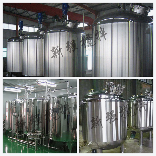 不銹鋼儲罐設(shè)備分缸體、缸蓋、進料口、出料口,均由不銹耐酸鋼304或316制成,罐體采用立式或臥式單層或雙層結(jié)構(gòu),并根據(jù)用戶要求充填保溫材料,按GMP技術(shù)條件進行,缸體內(nèi)拋光,外部采用鏡面板或磨砂板保溫。頂部開設(shè)進水口、回流口、消毒口、清洗口、人孔并安裝空氣呼吸器, 且可與管道連接,便于連續(xù)進各種配料,缸底為錐度,出料口便于放料。
