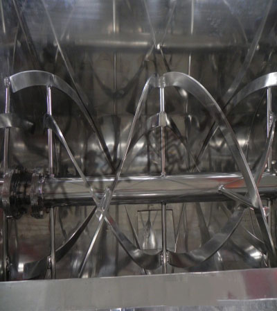 臥式螺帶混合機(jī)由U形容器、螺條攪拌葉片和傳動(dòng)部件組成;螺條狀葉片一般做成雙層或三層,外層螺條將物料從兩側(cè)向中央?yún)R集,內(nèi)層螺條將物料從中央向兩側(cè)輸送,形成對流混合。螺條混合機(jī)對于粘性或有凝聚性的粉粒體的混合以及粉粒體中添加液體及糊狀物料的混合有良好的效果,筒蓋可做成全開式門,以便于對設(shè)備進(jìn)行清洗替換產(chǎn)品。